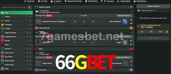 O 66Gbet oferece uma grande seleção de opções de apostas em e-sports com probabilidades competitivas